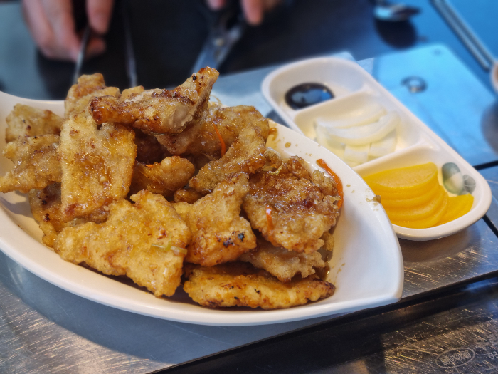 감칠맛 가득하고 짭조름한 소스와 가볍게 톡 쏘는 느낌이 조화롭다. 약간 어쭙잖게 비교하자면 교촌치킨 오리지널 양념 느낌이랄까? 오히려 소스가 과하지 않고 튀김에 적절한 간이 딱 맞는 이 집 꿔바로우는 상당히 매력적이다.