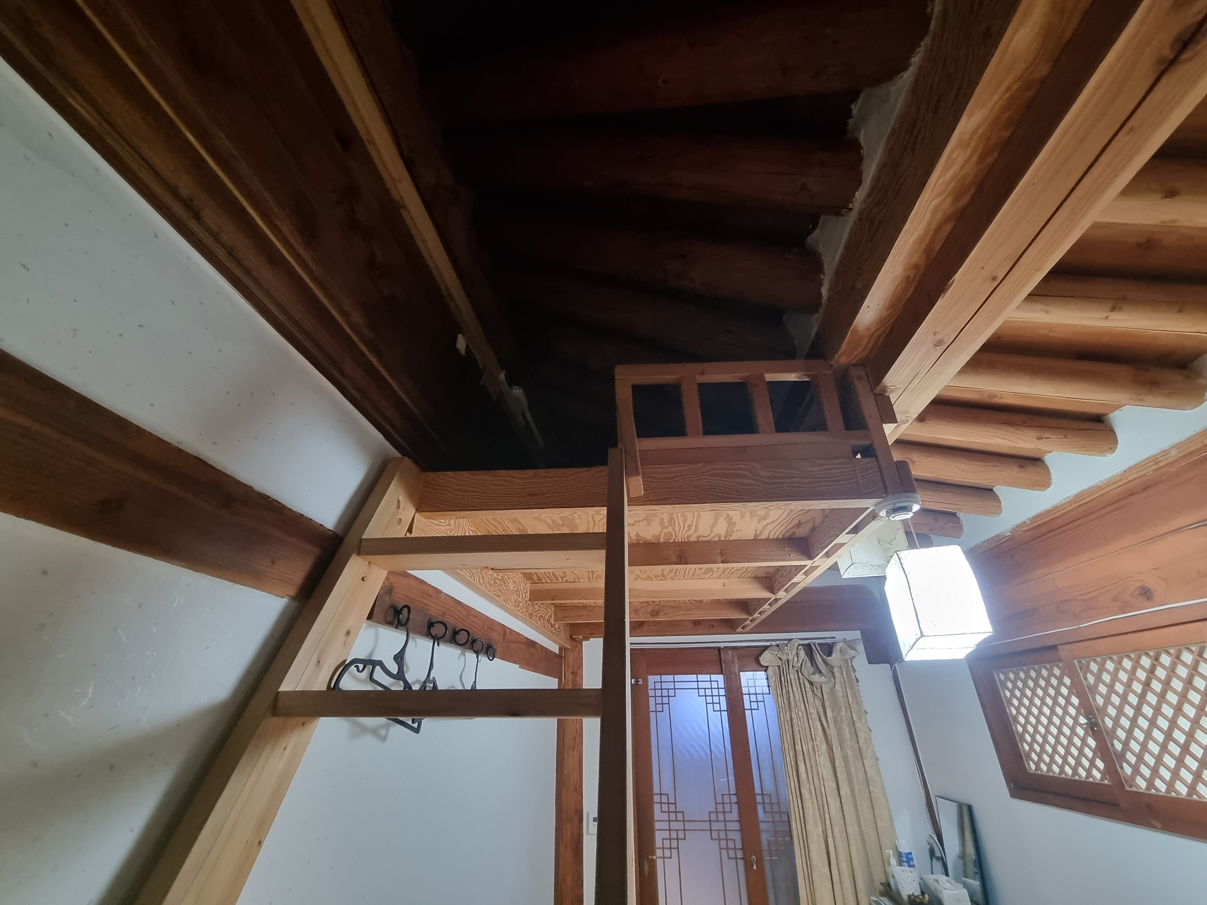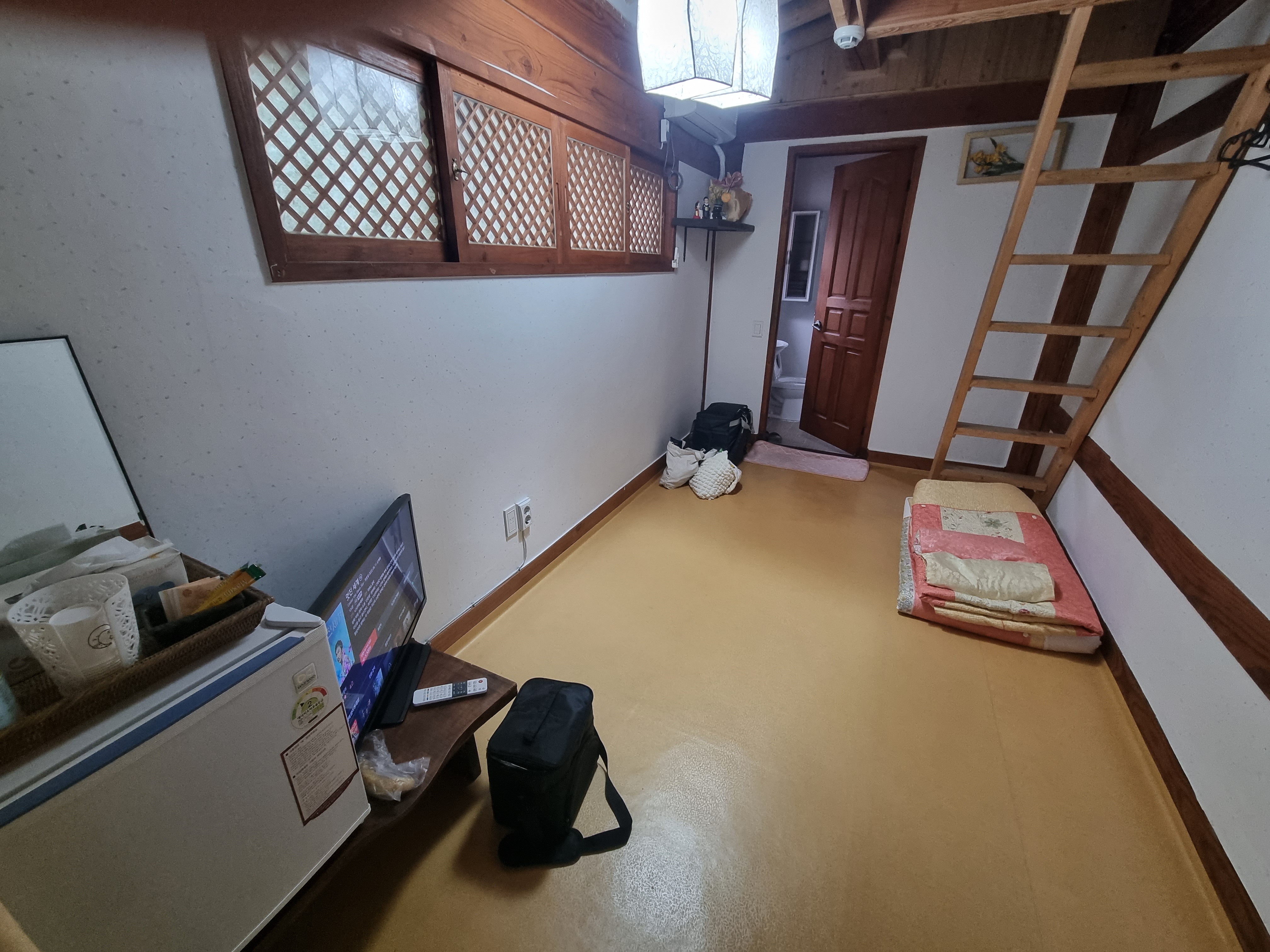 경기전 별당채 숙소 방들은 대부분 복층시설이 되어있었습니다. 어린아이들이 무척 좋아하는 방이라고 설명해놓으실 만큼 작지만 알찬 재미가 스며들어있었어요. 복층은 나무 계단이고 사실 어린아이들이 오르락내리락하기에는 미끄럽고 약간 위험해 보였습니다. 기울기가 상당했거든요. 복층 위로는 조명과 콘센트까지 알차게 설치되어있어 여기서 취침을 해도 불편함은 없었습니다. 이불은 인원에 따라 마련해주십니다. 각 이불과 매트는 컨디션도 좋았고 냄새도 안 나고 오히려 좋은 향이 났어요. 솜 꺼짐 없이 도톰하고 따뜻한 옛 이불들이라 무척 따뜻합니다. 청결관리 또한 꼼꼼하게 하시는 것 같았습니다.