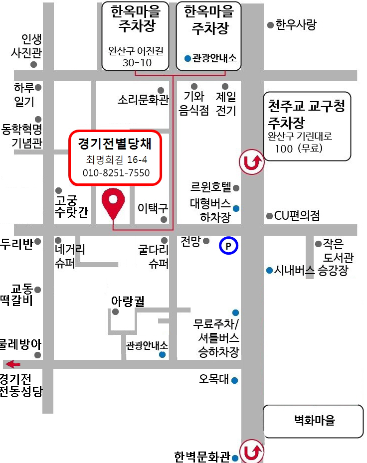 하지만 한옥마을 내부에 있는 공영주차장이 전부 만차일 경우에는 2km 떨어진 '대성동 공영주차장'을 이용하시면 되니 걱정하지 않으셔도 됩니다. 이 주차장은 한옥마을과 거리가 있지만 무료라는 장점이 있으며 한적하고 넓습니다. 여기서 주차 시 짐을 옮기는 게 걱정이 되실 수 있는데, 셔틀버스가 5분 간격으로 한옥마을까지 무료로 운행되고 있습니다.