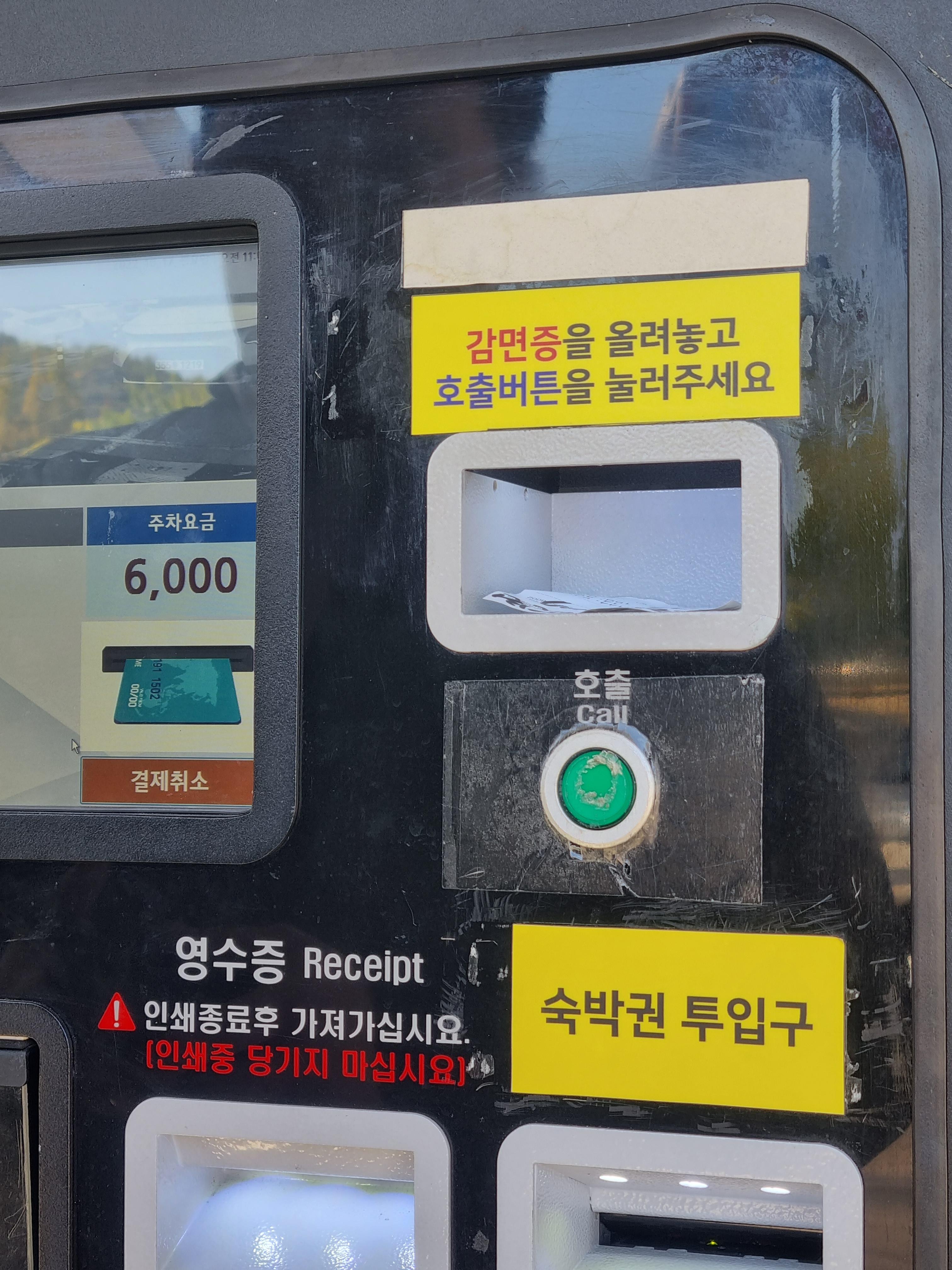 챙겨주신 영수증은 체크아웃 후 공영주차장에 가지고 가서 무인정산기 카메라 아래 비춰주시면 확인 후 50% 할인을 바로 적용해주십니다. 이렇게 하루 12000원에서 6000원으로 이용할 수 있었습니다.