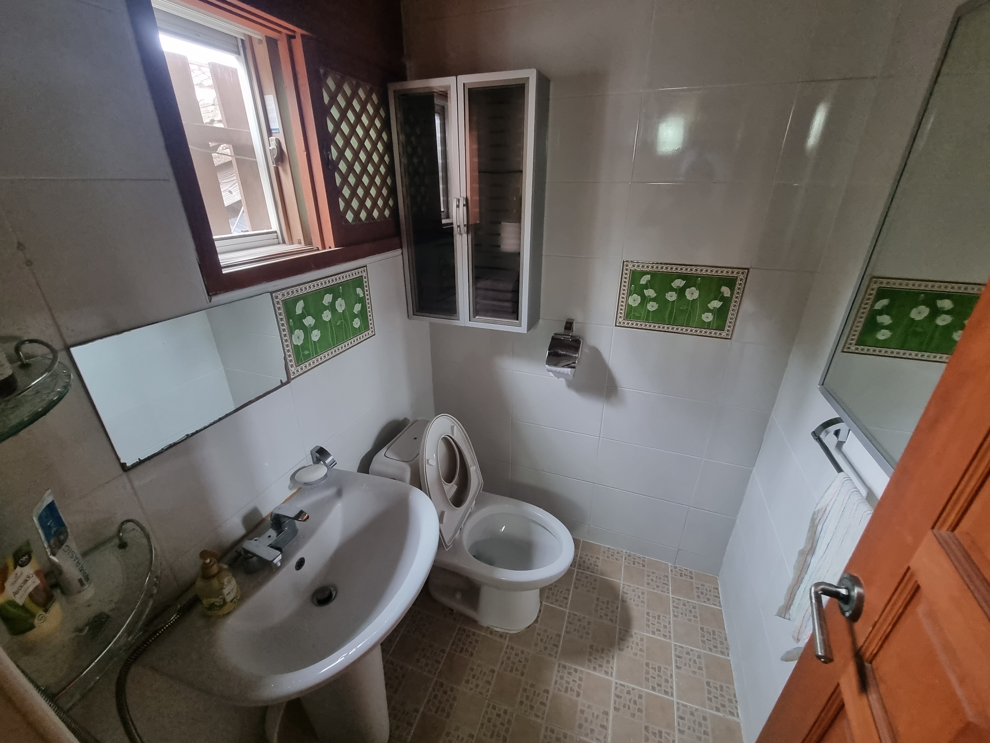 가장 먼저 기본적인 숙소 시설은 미니 냉장고, 생수, TV, 종이컵, 티백, 믹스커피, 휴지, 모기약, 에어컨, 화장실, 세면도구, 수건, 드라이기가 있습니다. 하루 3인이 머무는데 수건도 6장으로 넉넉하고 치약, 핸드워시에 폼클렌징까지 구비되어 있어서 편하게 여행 다니시는 분들에게는 몸만 오면 되는 숙소였습니다. 불편한 점이나 모자란 물품들에 대해서는 바로 사장님께 전화를 주시면 바로 해결해주신다는 적극적인 모습에 만족스러웠습니다.
