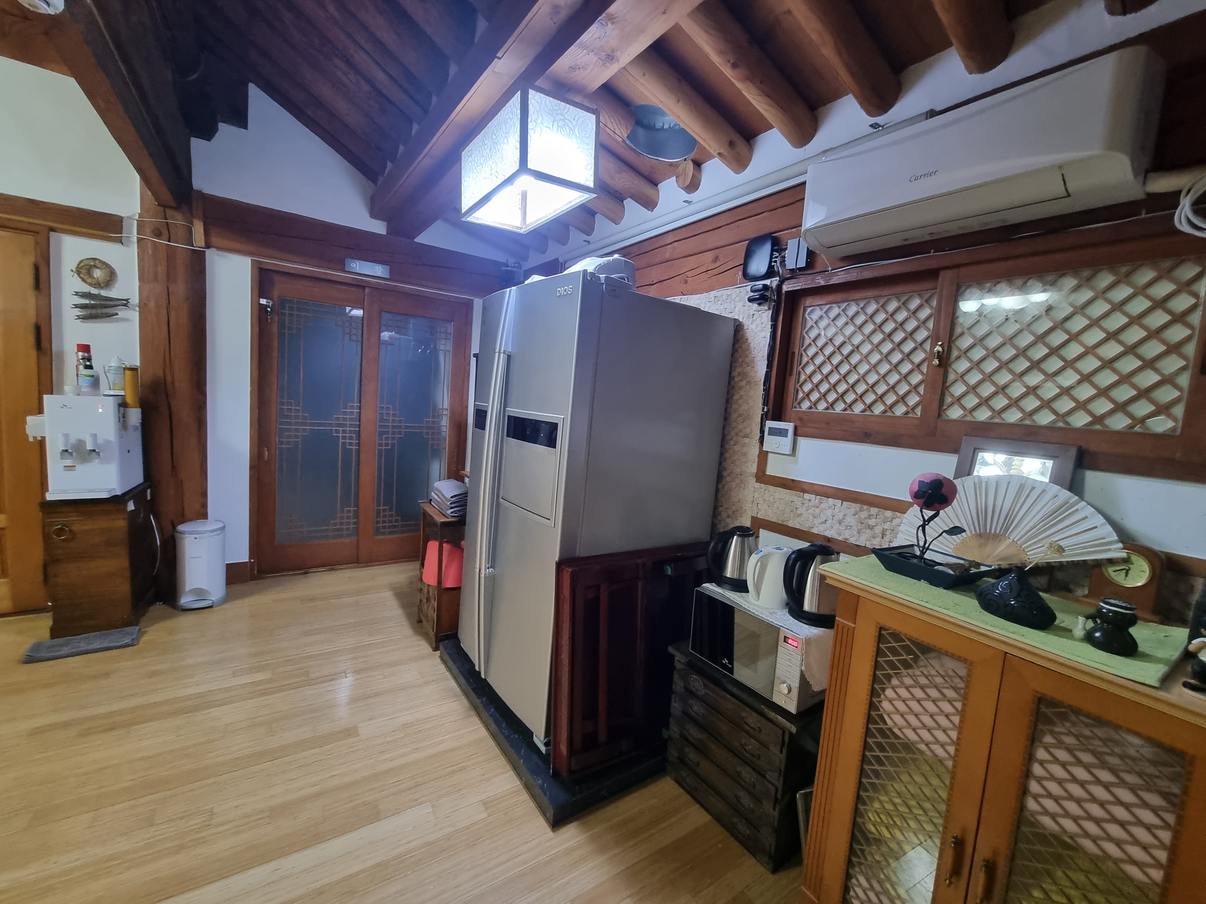 외곽에 있는 방들로는 '이성계', '세종대왕', '교태전'이 있습니다. 하지만 '세종대왕' 방은 집 안쪽으로 이어져있어서 아이와 함께 경기전 별당채에서 숙박을 하신다면 이성계 방과 교태전 방을 이용하시는 게 좋을 것 같습니다. 워낙 영유아들부터 미취학 아이들까지 방문을 하는 곳이다 보니 개별 전자레인지, 냉장고, 정수기, 아이 의자가 마련되어 있으며 특히나 교태전 방 같은 경우는 젖병소독기, 바운서, 방수매트, 유아변기까지 마련되어 있는 방으로 영유아와 함께 온다면 이 방이 제일 좋을 것 같습니다.